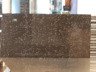 < Smoke dust found on exhibition gallery Perspex and Mylar bags >