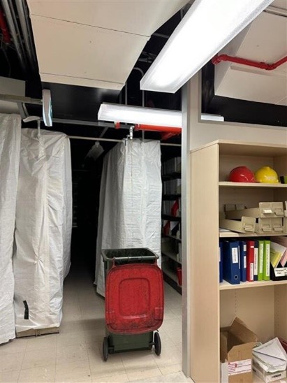 < Removing wet collections from storage and the slow drying process before return to storage >