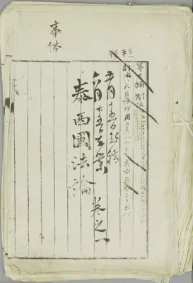 オランダ留学中にフィセリング(Simon Vissering)の講義を受けた西周と津田真道に関する資料。本資料は講義の道筋や方針を記した原案であり、フィセリングと2人の名前が見える。