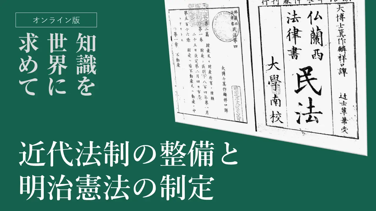 明治政府は、西洋諸国との対等な関係を求め、国内諸制度の近代化を進めました。幕末に結ばれた日本側に不利な内容を含む不平等条約の改正が大きな動機となり、近代法制の整備を急ぐこととなります。