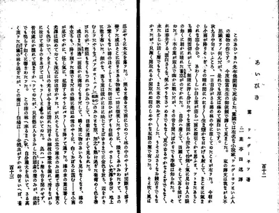 「あひゞき」(展示資料191)はツルゲーネフの『猟人日記』の部分訳。四迷は原著の句読点だけでなく、ダッシュやリーダーも忠実に再現しようとこだわった。展示箇所は、当時の読者が強烈な新鮮さを感じたという冒頭部分。ロシア語の持つ美しい音調をそのまま味わうことができる名訳とされる。