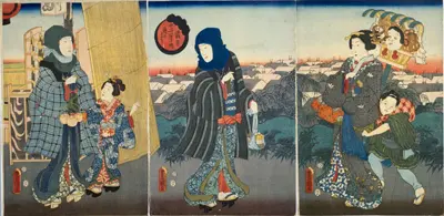 豊国「十二月ノ内 霜月酉のまち」安政元【寄別2-8-1-6】