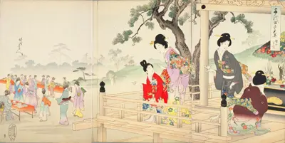 The month of April, which marks the beginning of summer, was called Uzuki because utsugi (hydrangeas) bore white flowers, which are called “uno hana.” The main event in Uzuki, is Kanbutsue, Buddha’s birthday, on the eighth. Kanbutsue, also known as the Flower Festival or Hana Matsuri, is a celebration where a small shrine called a hanamido is decorated with various flowers and set up in temple precincts. People pour amacha (hydrangea tea) over the tanjo butsu (Buddha at birth) placed on a basin inside the hanamido.
