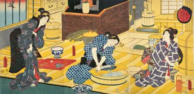Katsuo was so popular among Edokko (people born and raised in Edo) that one of the oldest senryu poems of the Edo period is "Eat hatsu-gatsuo even if you have to pawn your wife.” The boom in the popularity of hatsumono reached its peak around the Tenmei era (1781-1789) in the late Edo period. By the Bunsei era (1818-1830), the price of hatsu-gatsuo had soared to as high as four ryo (ryo is a former Japanese currency unit, with one ryo equivalent to 18 grams of gold). At that time, male servitors who worked for craftsmen or merchants earned about two ryo per year, making four ryo an eye-popping price for commoners. Even so, Edokko bought and ate hatsu-gatsuo together as a whole community in nagaya, Japanese row houses. There was a Japanese saying that eating hatsumono extends your life by 75 days. However, today, if we were to purchase and eat these first seasonal items for the equivalent of two years' worth of income, our hearts would stop in shock rather than gain those extra 75 days. This demonstrates the generosity of Edokko.