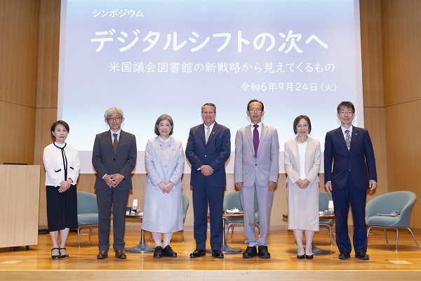 A symposium entitled "Building on the 'Digital Shift' - Implications for the future in the Library of Congress' new strategic plan" was held at the Tokyo Main Library of the National Diet Library (NDL) with Mr. J. Mark Sweeney, Principal Deputy Librarian of Congress, at the rostrum. Joining Mr. Sweeney for a subsequent panel discussion were Prof. TADANO Masahito, professor at the Hitotsubashi University Graduate School of Law, who acted as facilitator; Dr. KITSUREGAWA Masaru, president of the Research Organization of Information and Systems and professor at the University of Tokyo; Prof. MIZOUE Chieko, specially appointed professor at Kokushikan University and professor emeritus of the University of Tsukuba; and Mr. YAMAJI Yasushi, Deputy Director General of the National Diet Library. The program and keynote presentation material are available on the Events page. For an outline of the symposium, see NDL Newsletter No.260. The symposium video has been made available on our official YouTube channel.