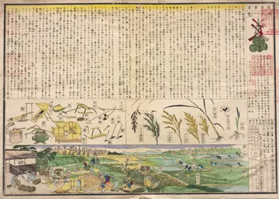近代学校制度で用いられた小学校の教科書は、当初は自由発行、自由採択で始まりました。その後、使用教科書の事前認可が始まり、明治19(1886)年から検定教科書の時代となります。本展示では、認可教科書から検定教科書時代の教科書を、教科別にご紹介します。また、教育現場で使用された掛図の雛形、家庭教育で使用した教育錦絵を併せてご紹介します。