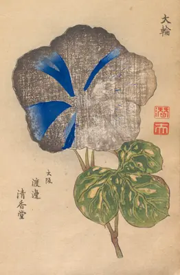 朝顔は薬草として奈良時代に唐や百済から伝来し、「牽牛子」、薬名としては「黒丑」と呼ばれ、主に薬草園で栽培されていました。江戸時代に、園芸文化の発達とともに朝顔が愛好されるようになり、文化・文政期(1804~30)と嘉永・安政期(1848~60)に「変化朝顔」のブームが訪れます。明治にも朝顔がブームとなった時期がありました。この3回の流行期の様子を資料から少し紹介します。