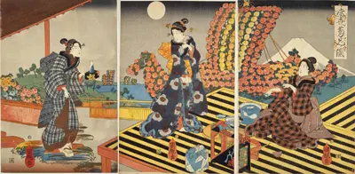江戸時代には、人々が集まって月が出るのを待つ月待という行事が頻繁に行われました。一種の民俗的な行事であり、仲間との親睦や遊興を目的に行ったようです。月待には、十三夜・十五夜・十七夜・二十三夜などがありました。