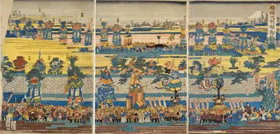 9月は秋祭りのシーズンでもありました。秋祭りの中でもとりわけ長い祭りが芝神明祭です。古くから「だらだら祭り」と呼ばれ、祭りの期間中の名物は生姜市であり、初物の生姜が門前で売られました。また15日には、江戸の大きな祭りの最後を締めくくる神田明神祭が盛大に行われました。