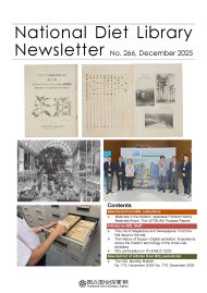 National Diet Library Newsletter is issued six times a year by the Branch Libraries and Cooperation Division of the National Diet Library to provide information about the National Diet Library's general information, services, collections, projects etc.