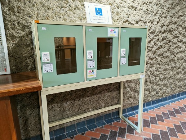 本館入口と新館入口に車椅子に対応したバリアフリー対応ロッカーを設置しています。